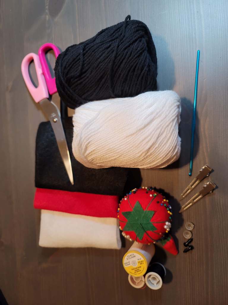 Hot glue gun the white monokuma head to a hair clip. You want to position it so that the white monokuma is going to be clipped on the right side of your head.