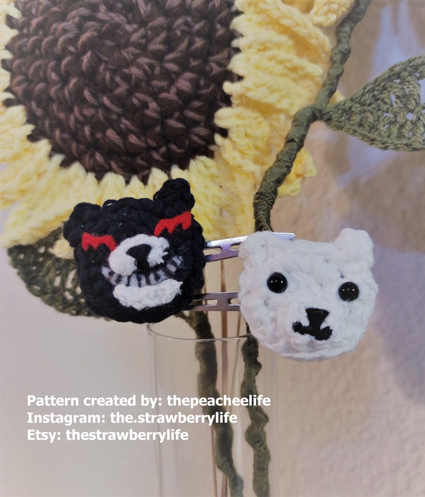 Hot glue gun the black monokuma head to a hair clip. You want to position it so that the white monokuma is going to be clipped on the left side of your head.